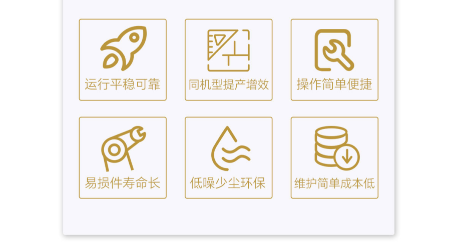 優(yōu)勢特點:運行平穩(wěn)可靠、同機型提產(chǎn)增效、操作簡單便捷、易損件壽命長、低噪少塵環(huán)保、維護簡單成本低