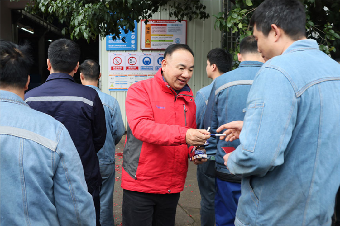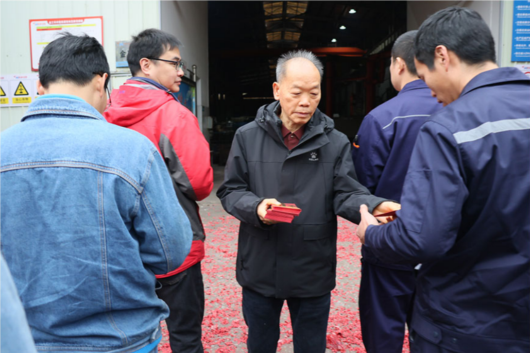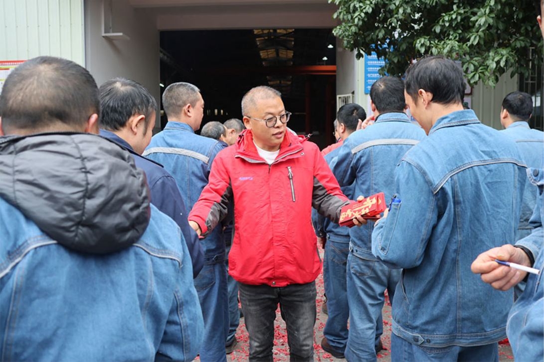 領(lǐng)導(dǎo)致辭結(jié)束后,公司高層為全體員工派發(fā)新年紅包。紅包雖小,情意深重,不僅承載著公司對(duì)員工辛勤付出的感謝,